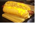 Salsicha defumada enrolada com bacon, maionese especial, molho cheddar, muçarela e crispy onion no pão macio de hotdog.