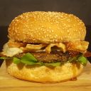 Pão de hambúrguer, hambúrguer vegano de cogumelos ou berinjela (150g), molho Sweet Chilli, muçarela, tomate e rúcula.